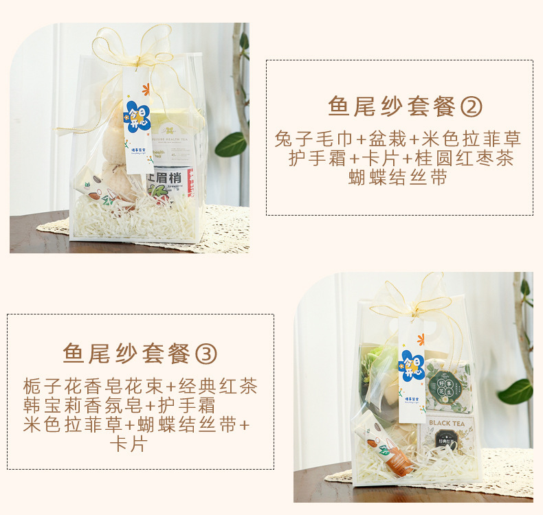 - Specifications: Color: Fish-tail ribbon [Package ③]; Size: Small 18*10*26cm; Handle size (Length*Width): White border