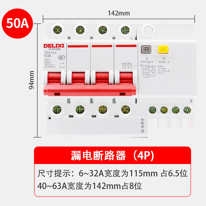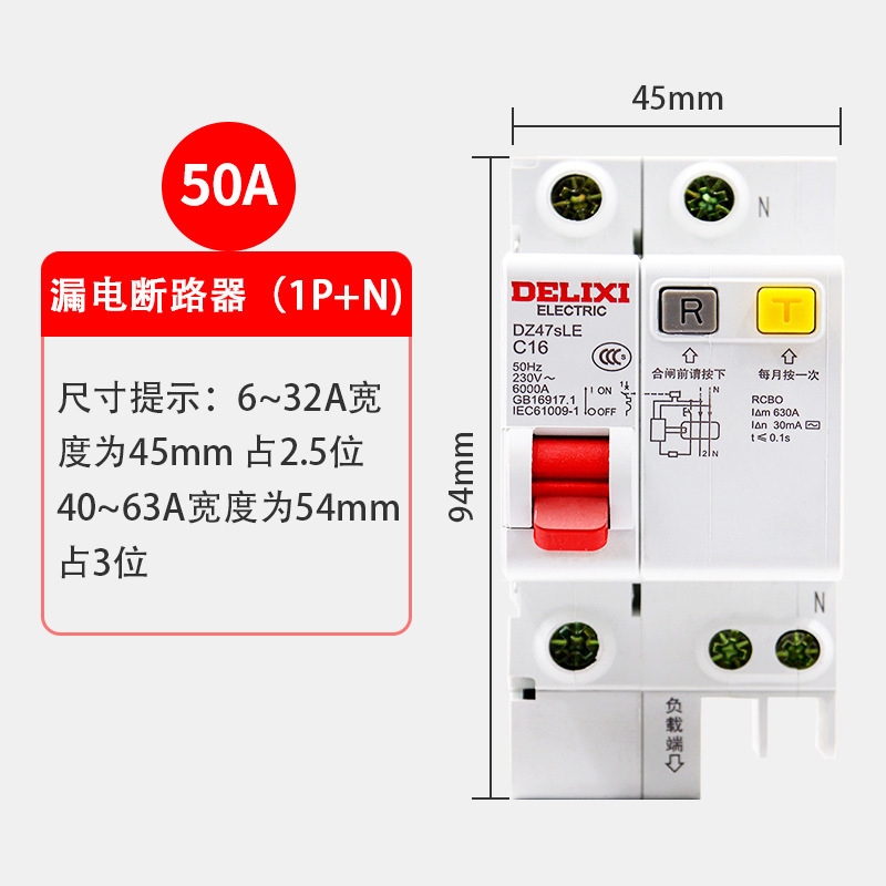 - Model: DZ47sLE1P+N (N pole straight-through) C50A