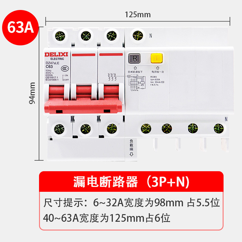 - Model: DZ47sLE3P+N (N pole straight-through) C63A