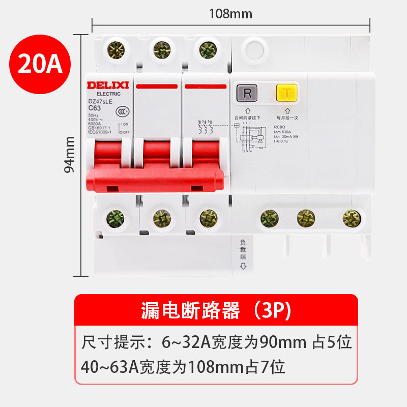 - Model: DZ47sLE3P+N (N pole straight-through) C20A