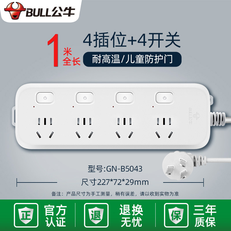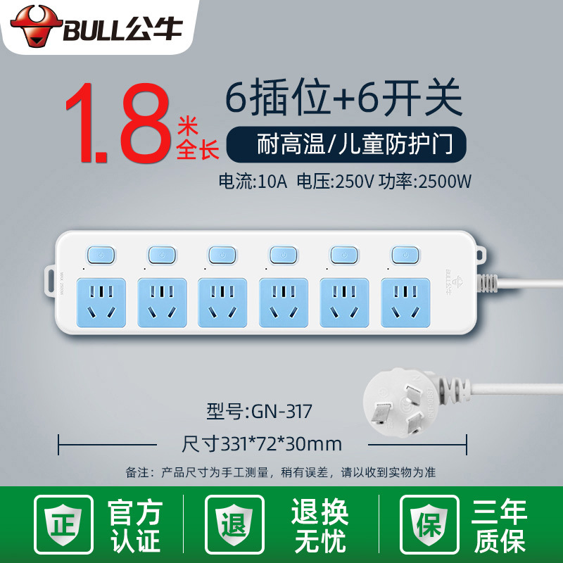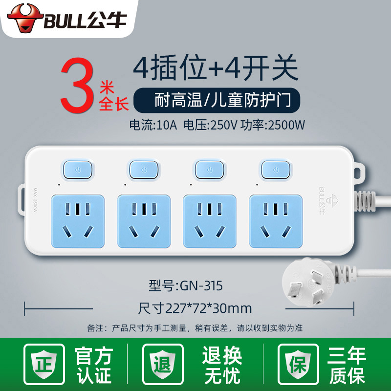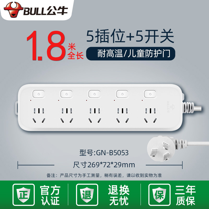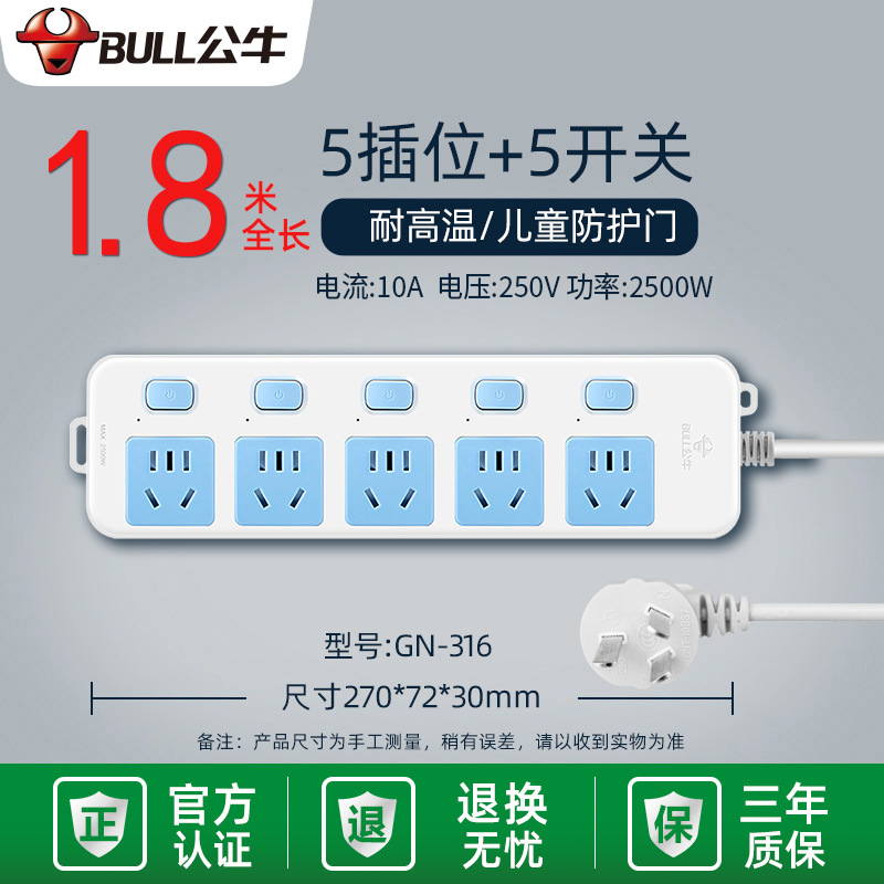 - Specifications and models: 5 jacks + total length 3 meters + high-end lightning protection and anti-surge GN-H4053