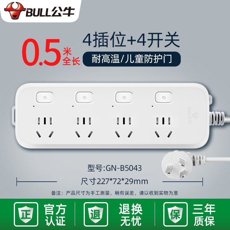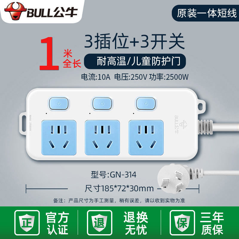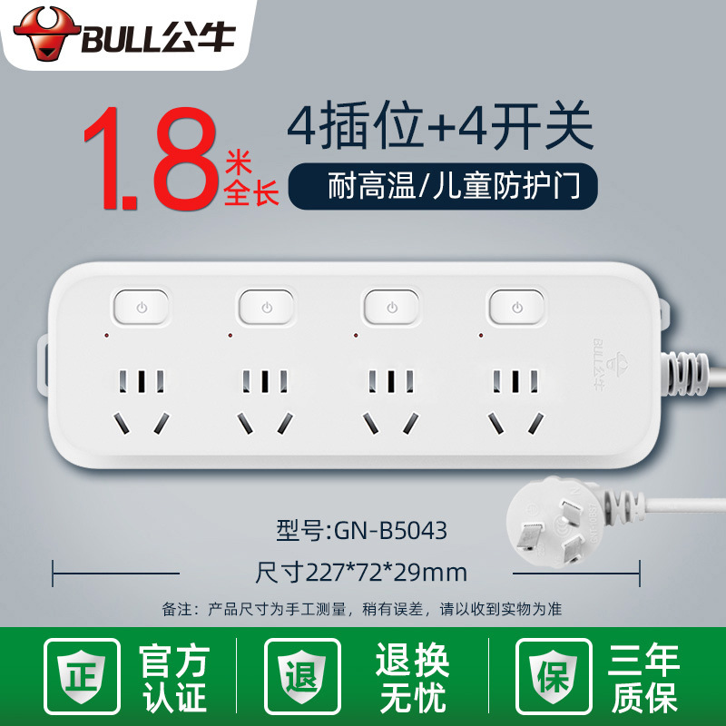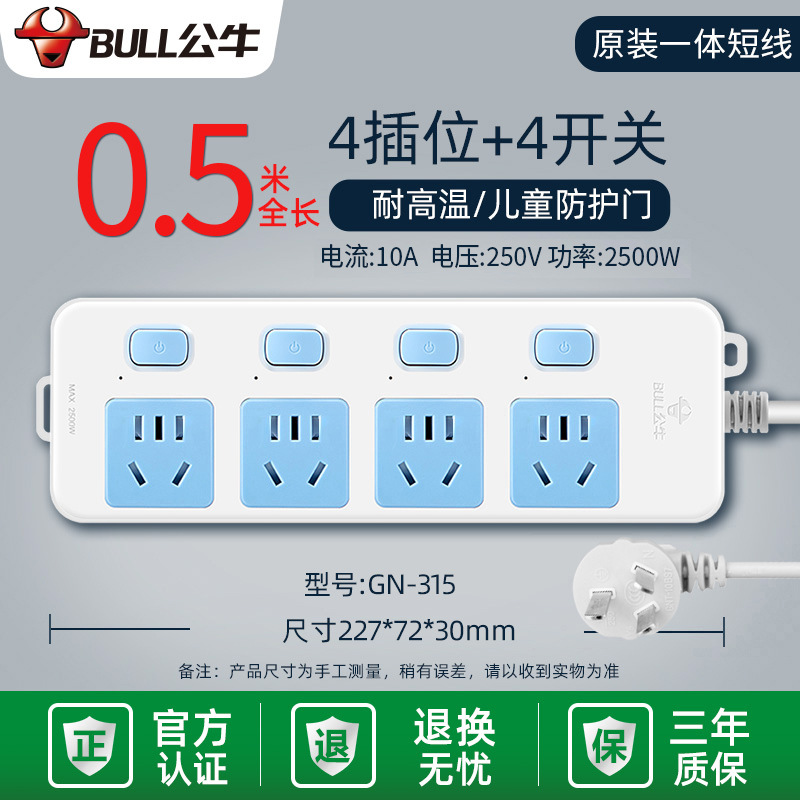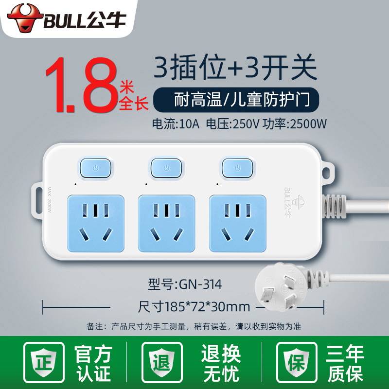 - Specifications and models: 5 jacks + total length 3 meters + high-end lightning protection and anti-surge GN-H4053