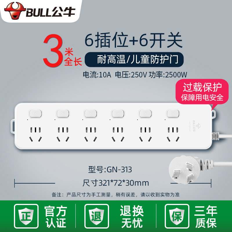 - Specifications and models: 6 jacks + total length 3 meters + overload protection GN-313