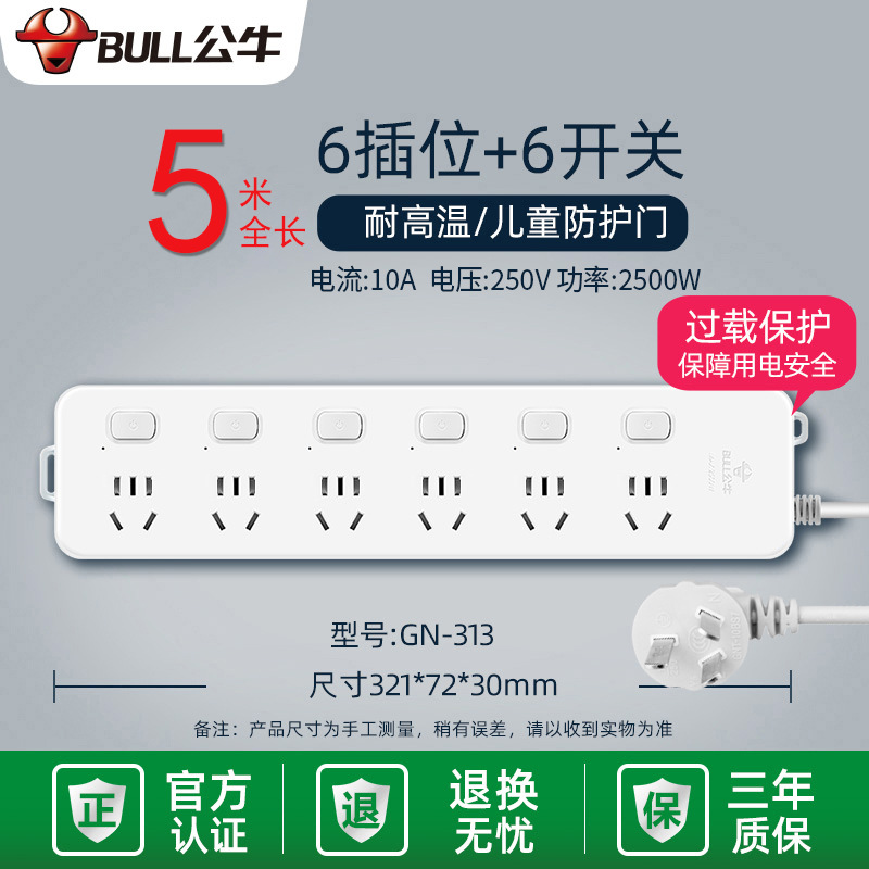 - Specifications and models: 5 jacks + total length 3 meters + overload protection GN-312