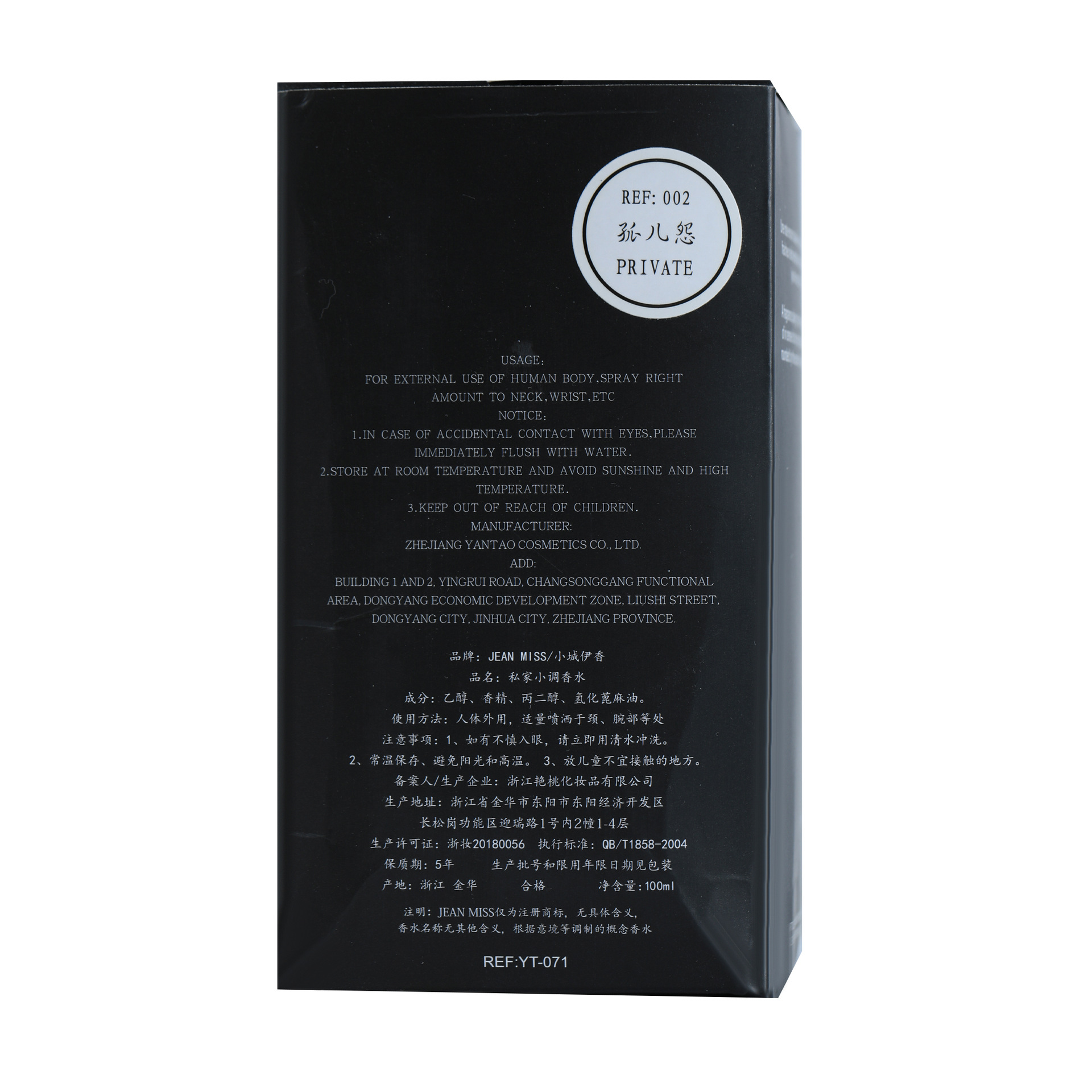 - Non-special cosmetics registration certificate number: Zhejiang G makeup network registration number 2019019810