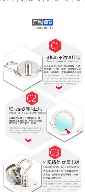 - Material: A3 iron shell + NdFeB strong magnet