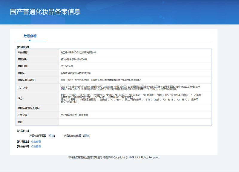 - Non-special cosmetics registration certificate number: Zhejiang G makeup network registration number 2020006336