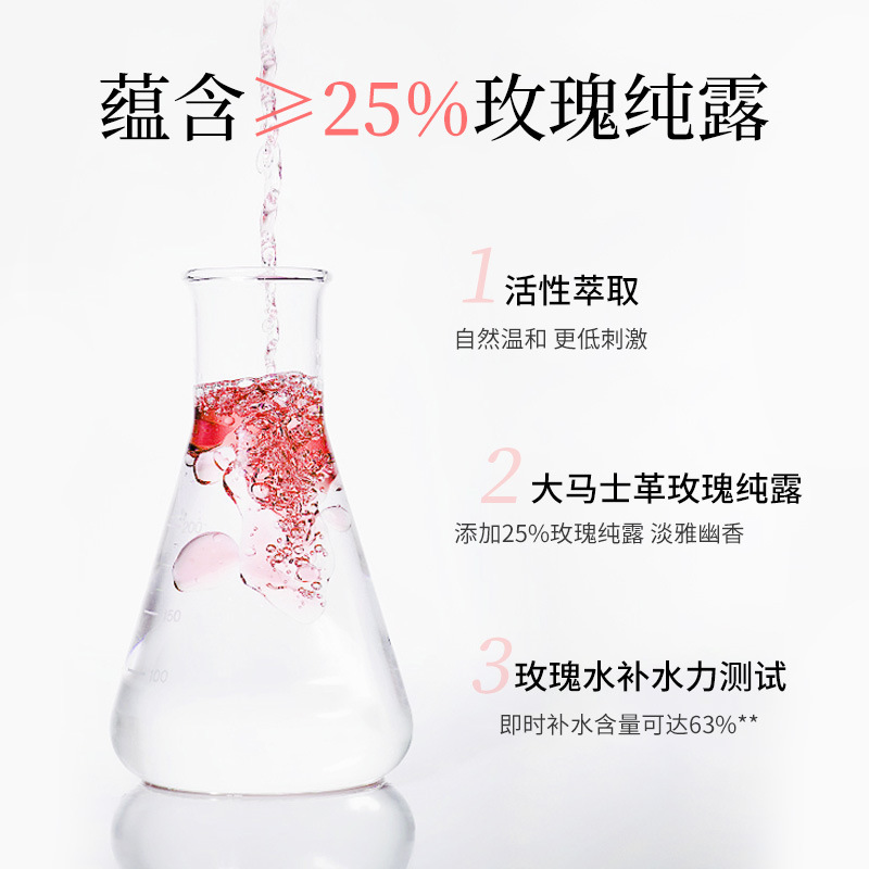 - Ingredients: rose water