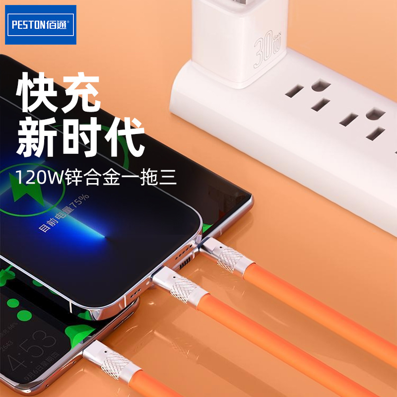 - Model: 120W Zinc Alloy One-to-three Silicone Data Cable [Naked]