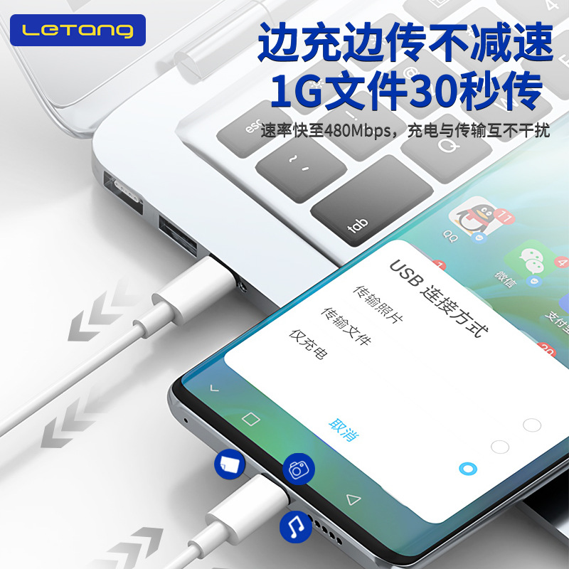 - Data cable wholesale: Letang 20W dual Type-C fast charging PD protocol data cable mobile phone laptop two-way data charging cable