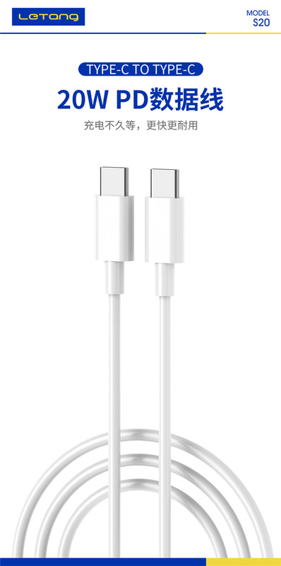 - Data cable manufacturer: Letang 20W dual Type-C fast charging PD protocol data cable mobile phone laptop two-way data charging cable