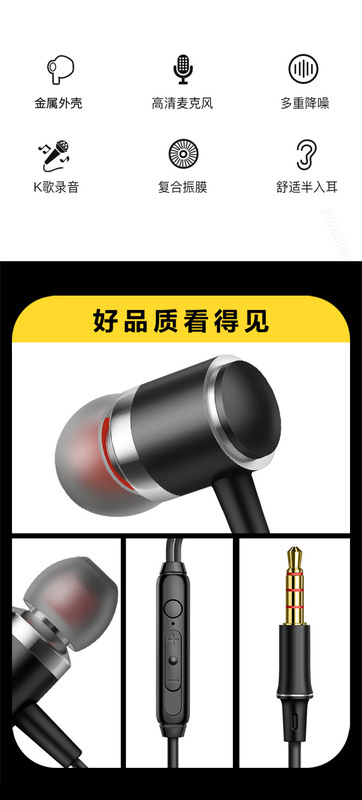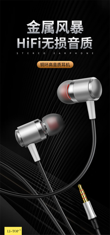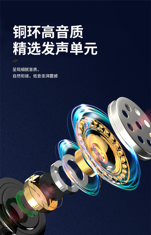 - Headphone computer: Rio Tinto V2 in-ear copper ring speaker full metal heavy bass listening to music Android smart wired call wired headset