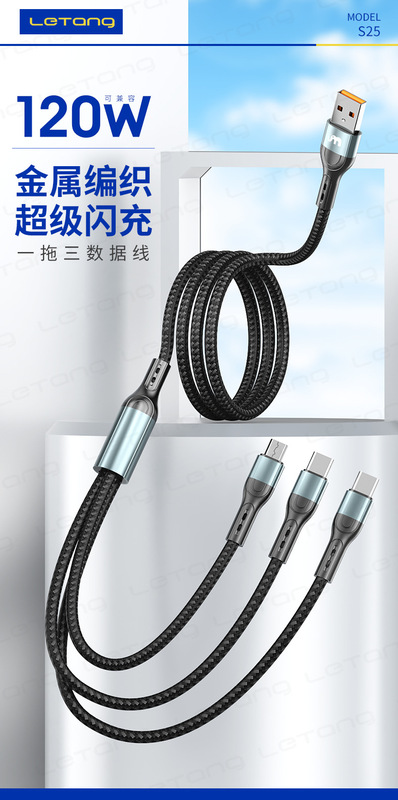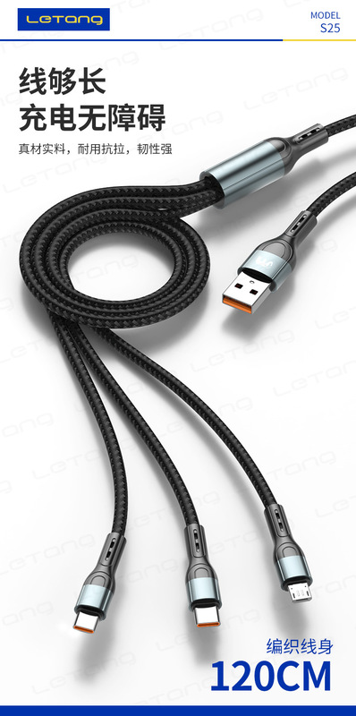 - Model: LeTang LT-S25 Fast Charging 120W One-Trip-Three Charging Cable