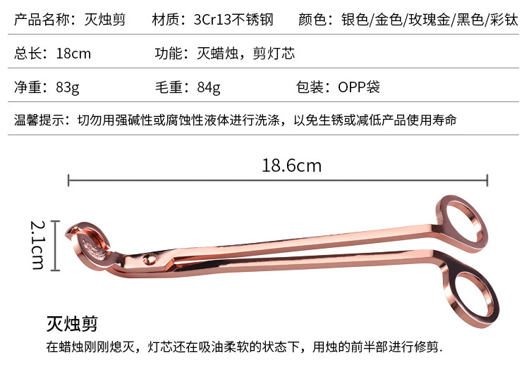 - Specification: Rose Gold Candle Snipper