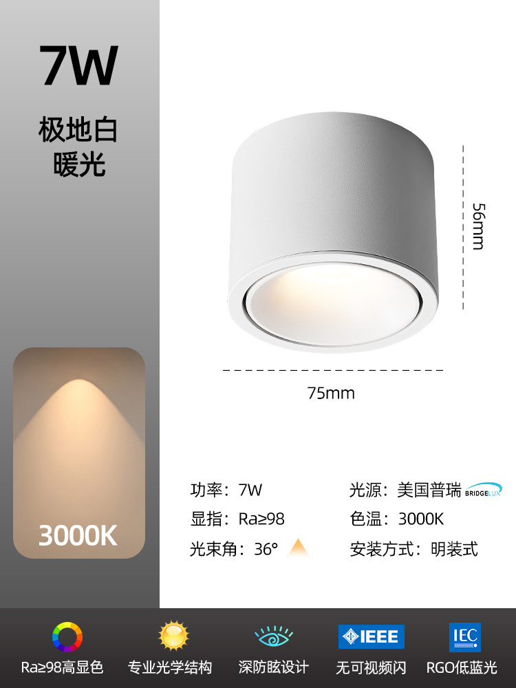 - Power: White Model 7W-3000K-High CRI Ra98