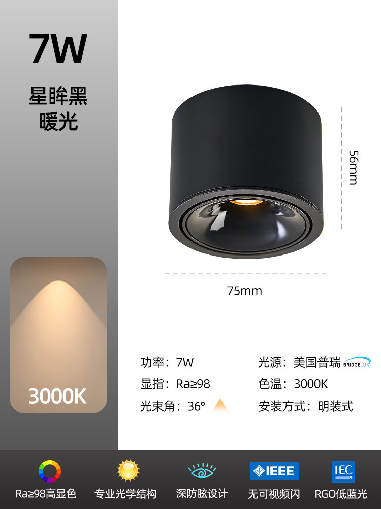 - Power: Black Model 7W-3000K-High CRI Ra98