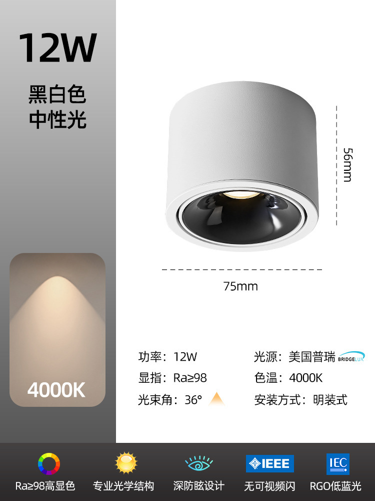 - Power: Black & White Model 7W-6000K-High CRI Ra98