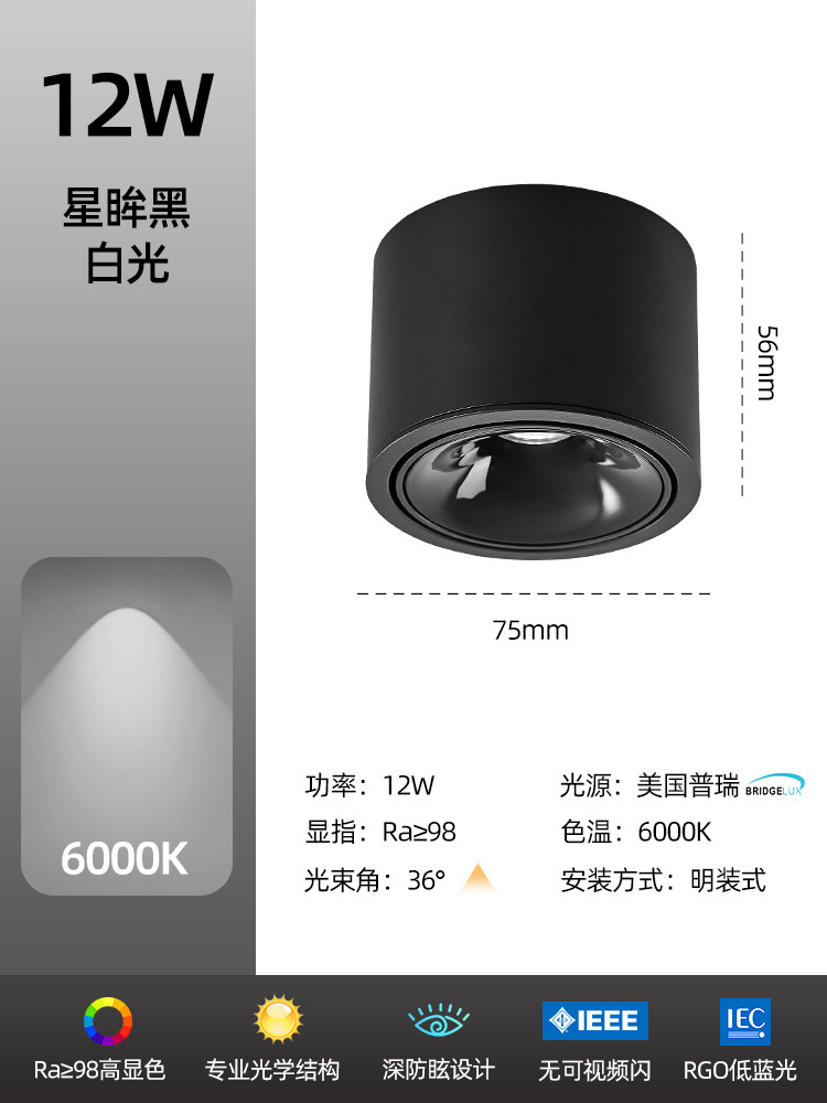 - Power: Black Model 10W-6000K-High CRI Ra98