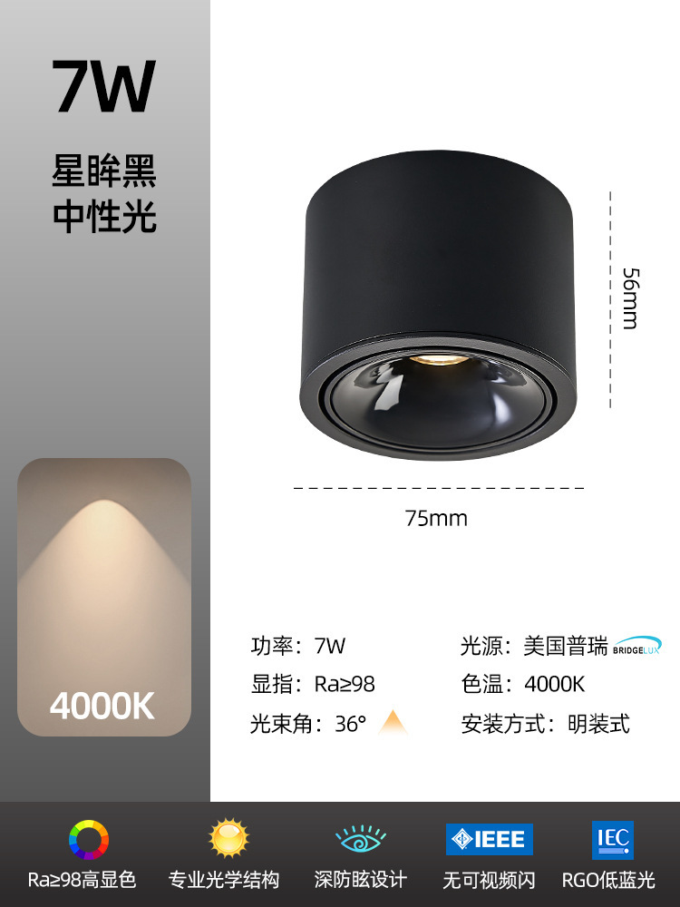 - Power: Black Model 7W-4000K-High CRI Ra98