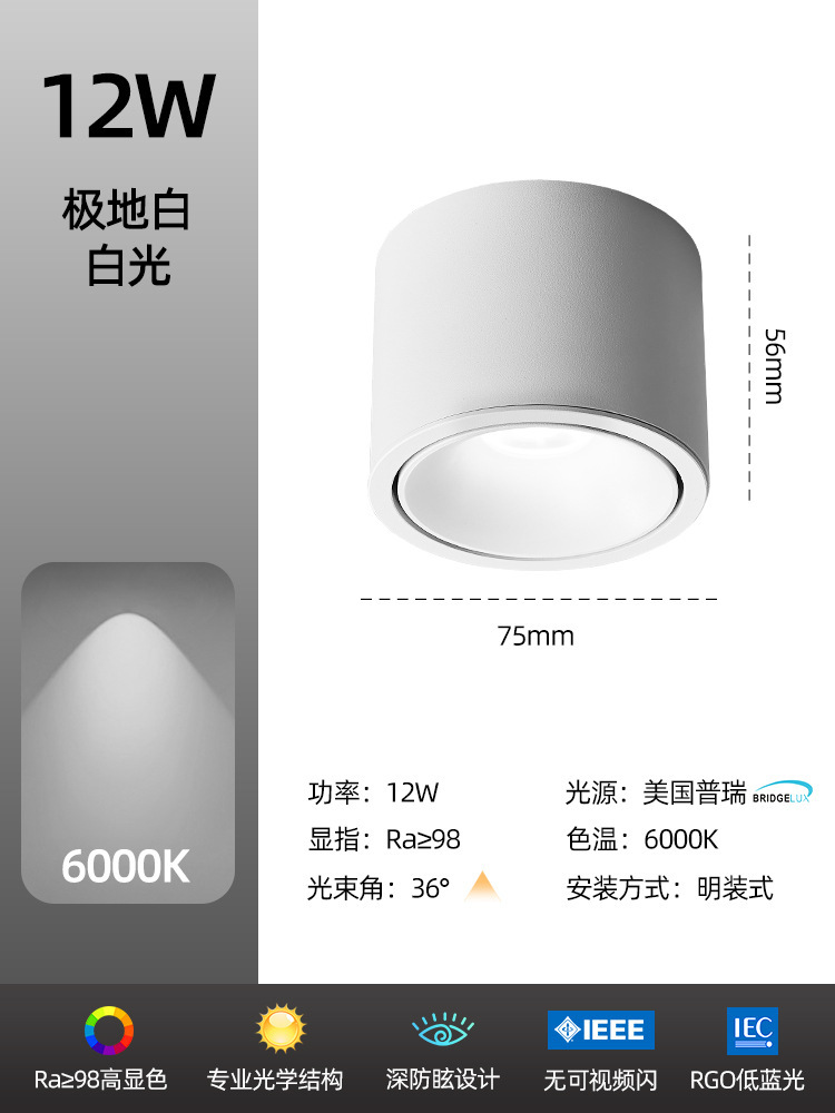 - Power: Black Model 7W-6000K-High CRI Ra98