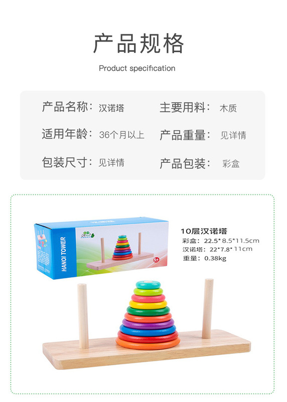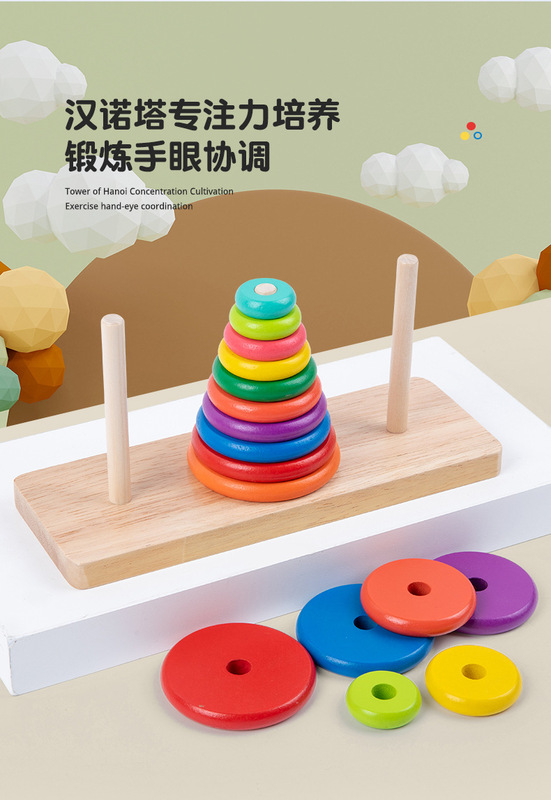 - Product name: Children's Early Education Enlightenment Ten-layer Wooden Tower of Hanoi Rainbow Building Blocks Jenga Rings Wholesale Educational Toys for Primary School Students