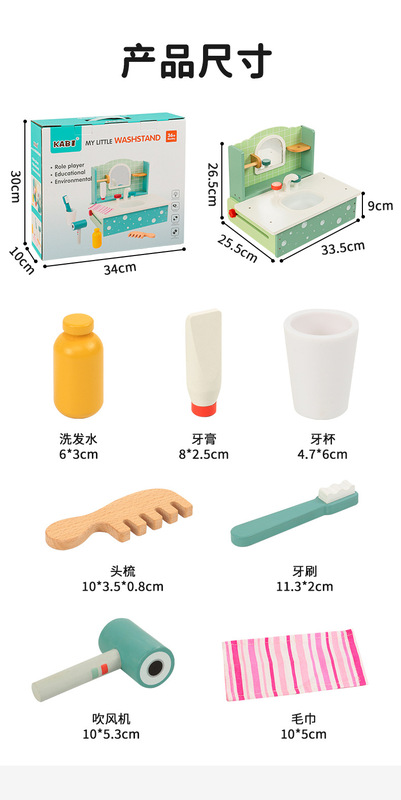 - Product name:Children's wooden early education simulation bathroom vanity princess girl birthday gift set educational role-play toy