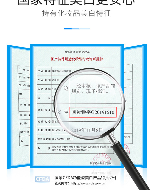 - Special use cosmetics certificate number: National Cosmetic Special Character G20191510