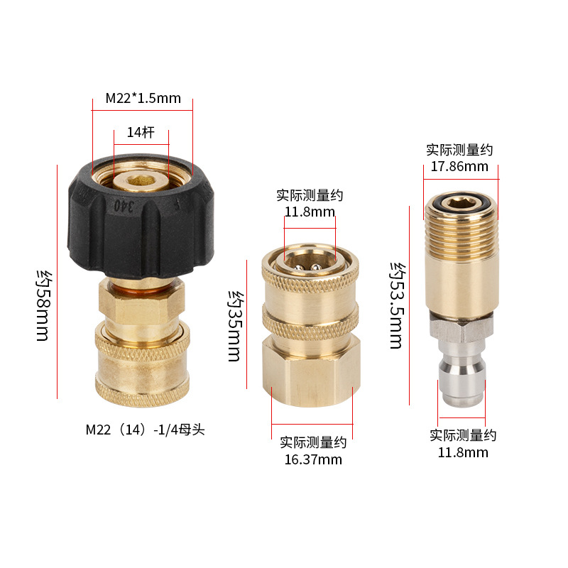 - 規格型號:內22插芯14轉1/4小母頭+4色噴嘴一套(孔徑1.2毫米)*銅