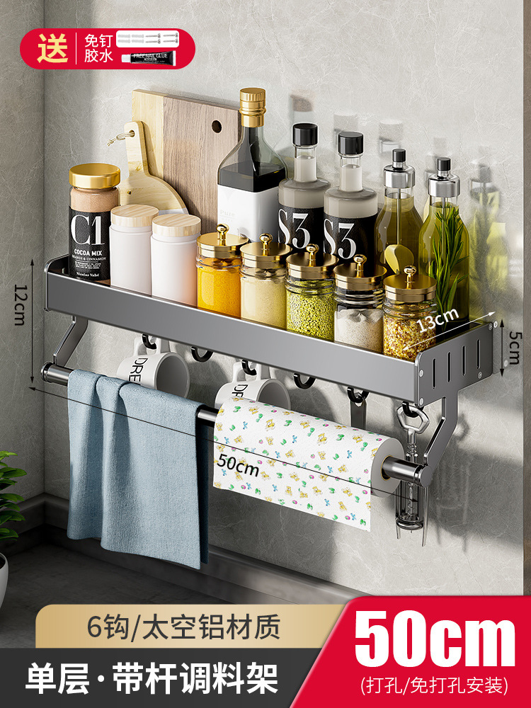 - Number of Layers (Specification): Single-layer gun gray 50CM tray shelf with hooks and rods