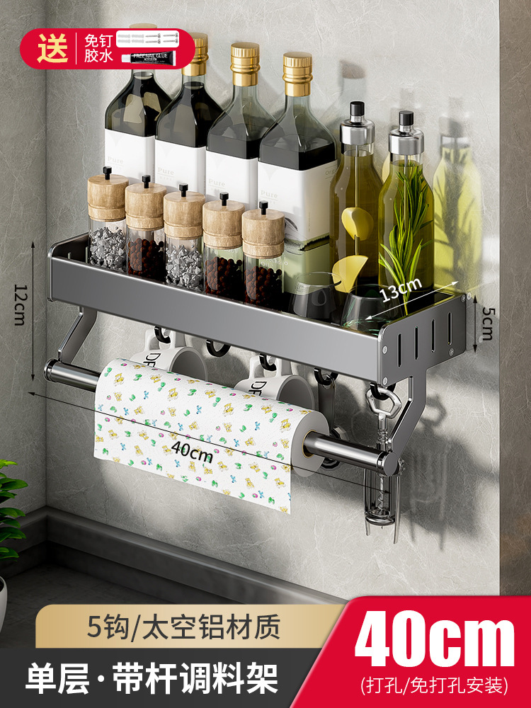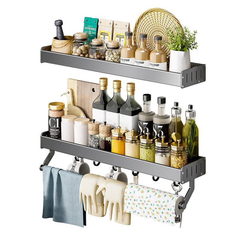 - Number of Layers (Specification): Single-layer gun gray 40CM tray shelf with hooks and rods