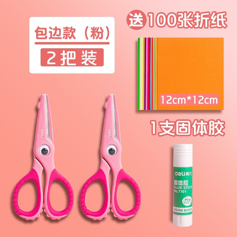 - Specification: 2 pieces【Alligator Edge】Blue + Pink / Comes with 100 sheets of origami paper + 1 solid glue