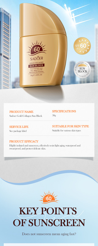 - Product name: SADOER Gold Collagen Sunscreen Lotion SPF60+PA+++ (foreign language version) 30g
