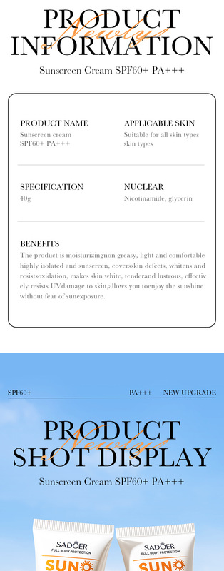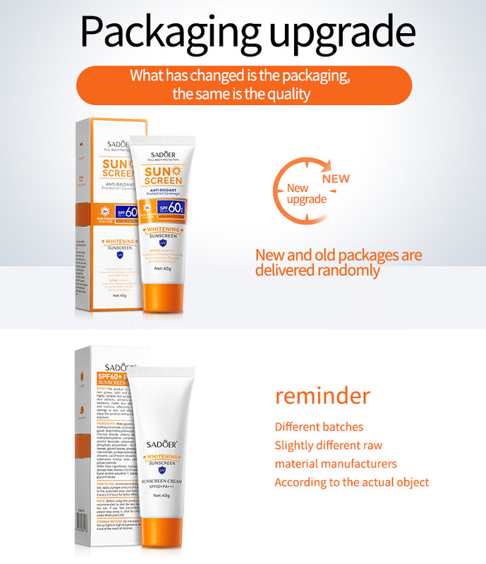 - Product name: SADOER sunscreen SFPPA+++60 (foreign language version) 40g