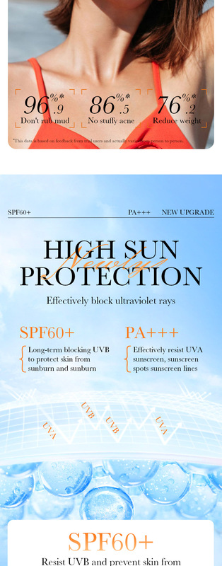 - Cosmetic properties: SPF60+PA+++