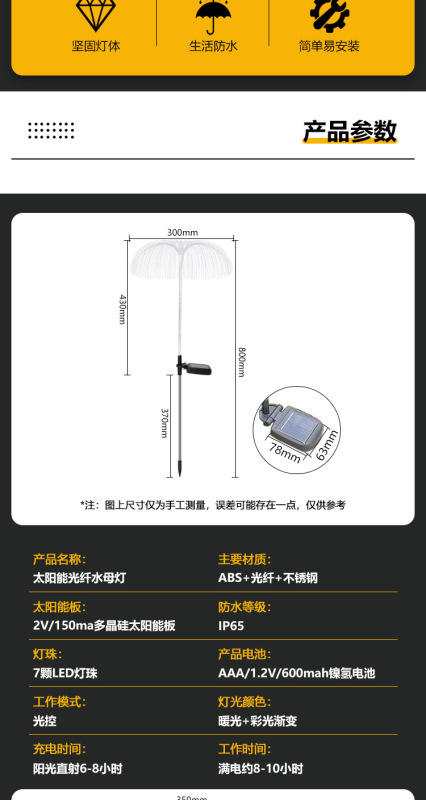 - Specification classification: Fountain jellyfish (fiber optic light)