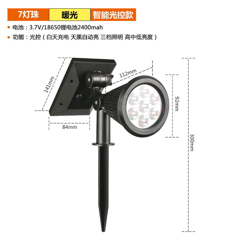 - Specification classification: 7LED spotlight warm light (3 modes)