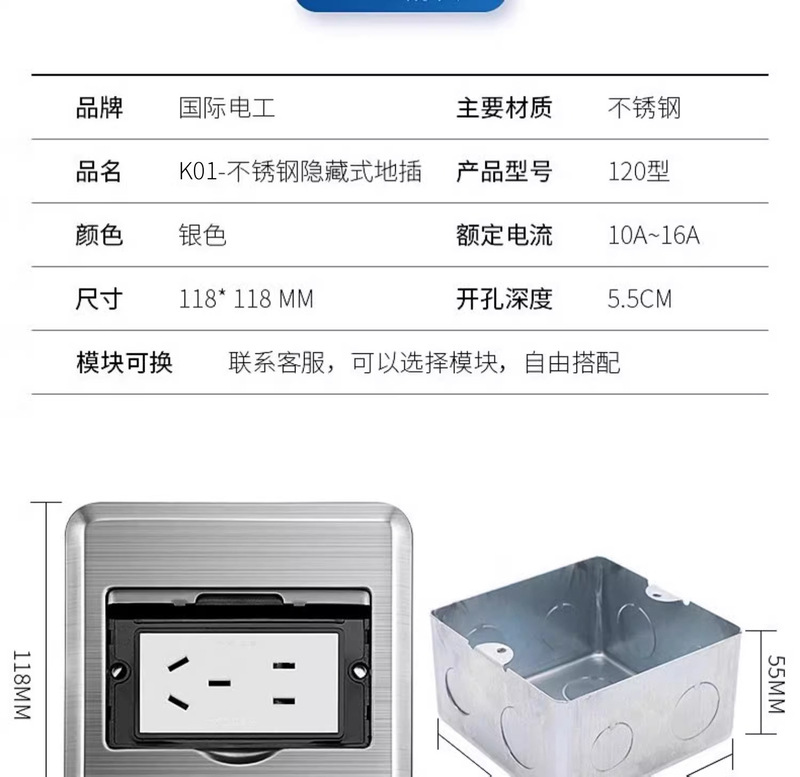 - Model: K01 [stainless steel] 16A five holes