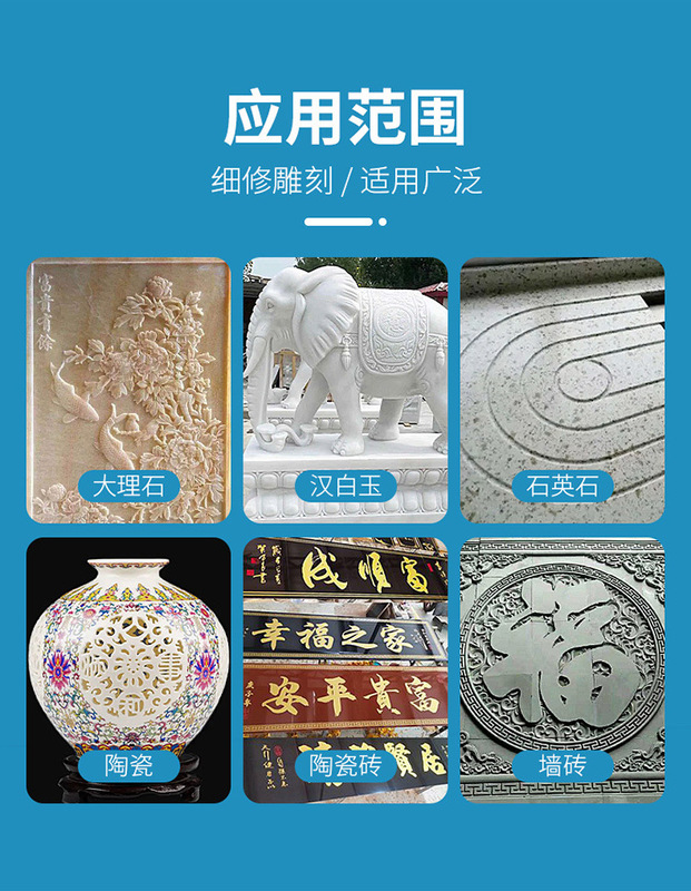 - Processing objects: stone, ceramic tiles, ceramics, jade