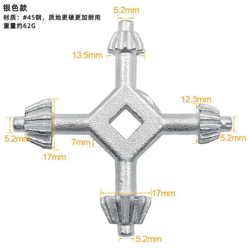 - Specification: Small silver four-head key wrench