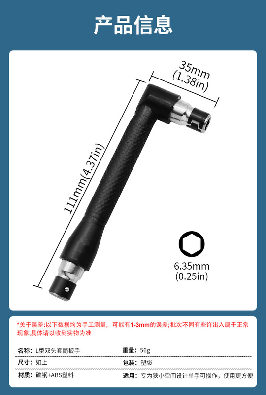 - Specifications and models: L-shaped double-head socket wrench *6.35mm