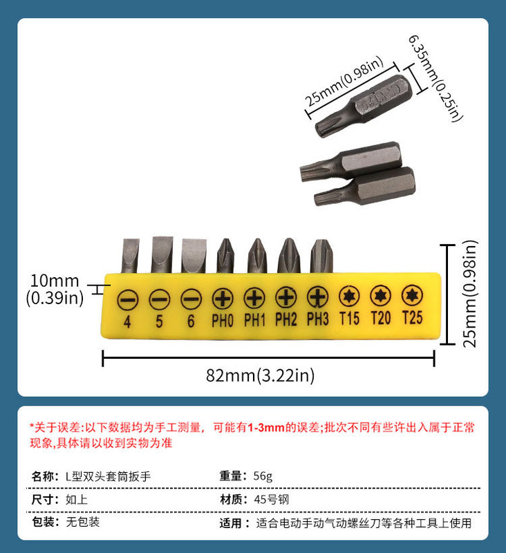 - Specifications and models: Socket wrench + 10 bits *6.35mm