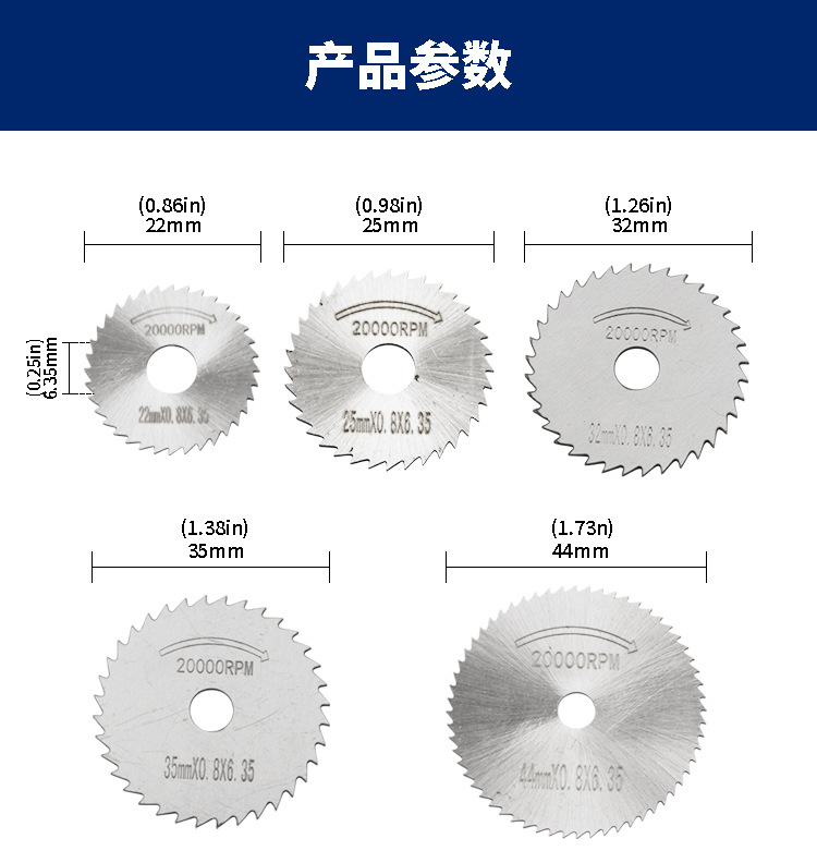 - Specifications: 2-piece set 25×0.5×6.35mm saw blade + 3.2mm rod