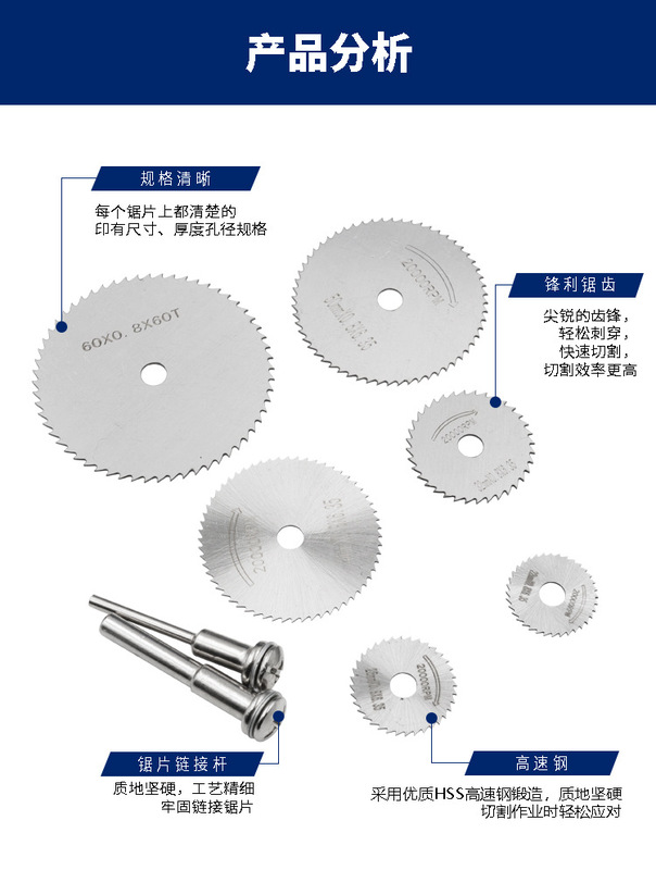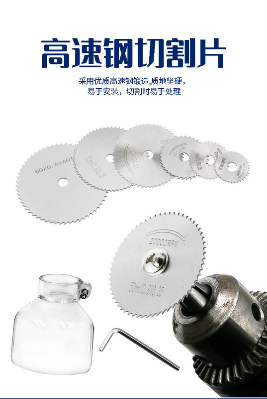 - Specifications: 6-piece set of silver saw blades + 6mm rod