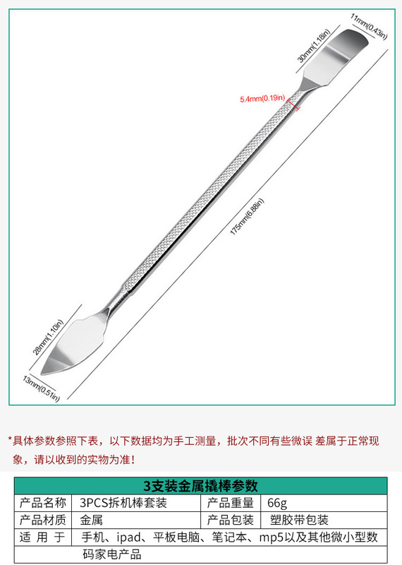 - Specifications and models: Three-piece set of metal crowbars