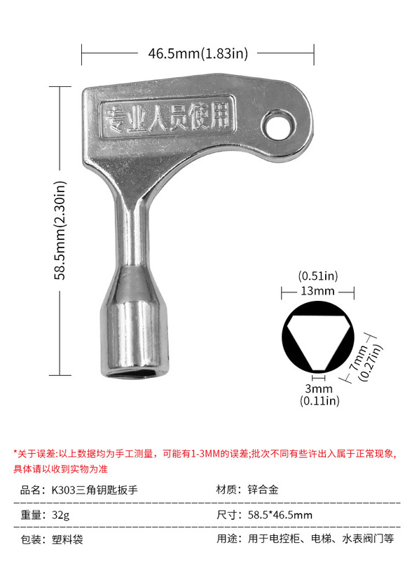 - Specification model: triangle key wrench