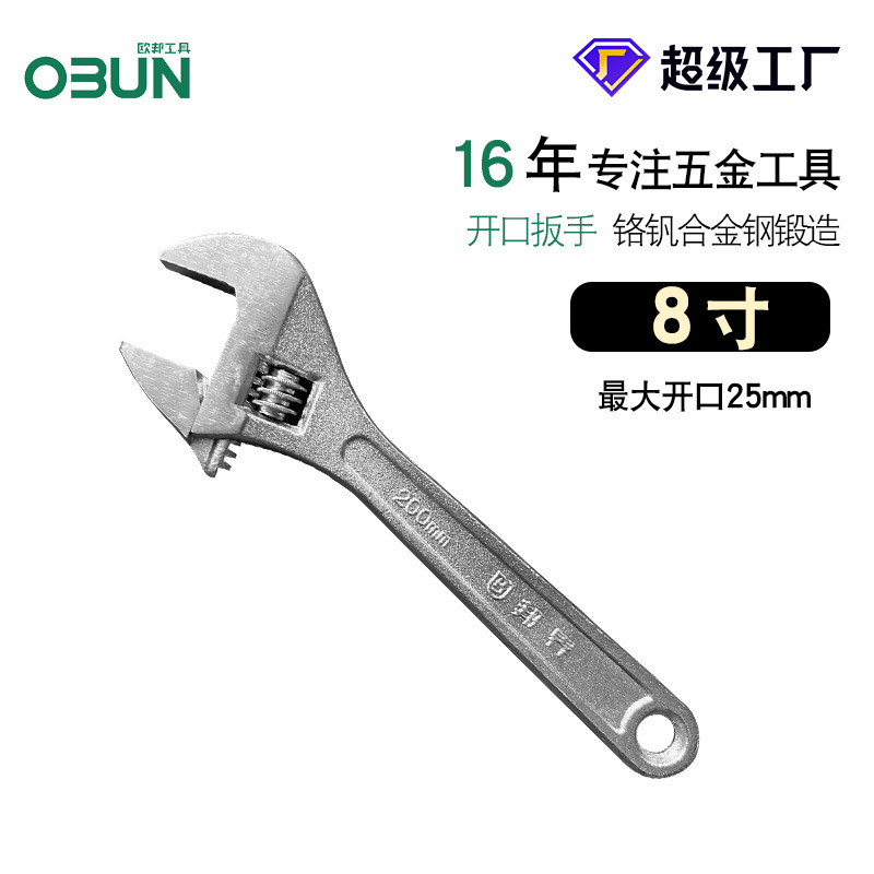 - Specification model: 401204, matte 8-inch adjustable spanner in box 8-inch (box 6/box 120) 0.22kg