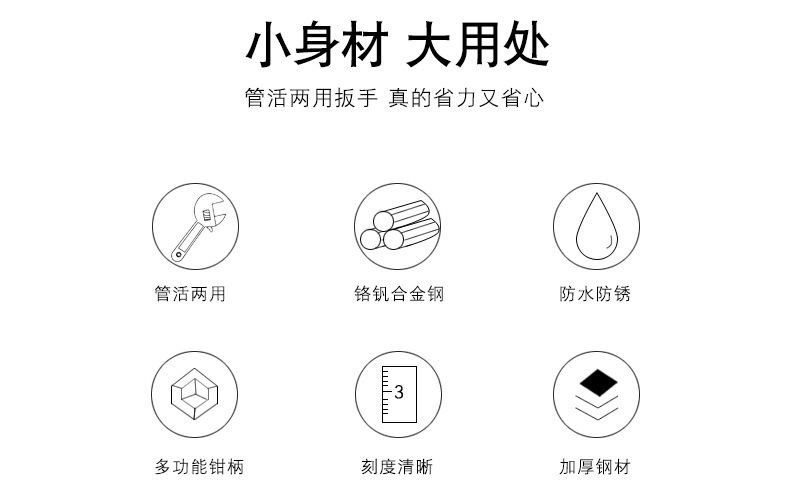 - Specification model: 401526, Bangjie adjustable wrench 12 inches (box 6/carton 60 pieces) 0.62kg