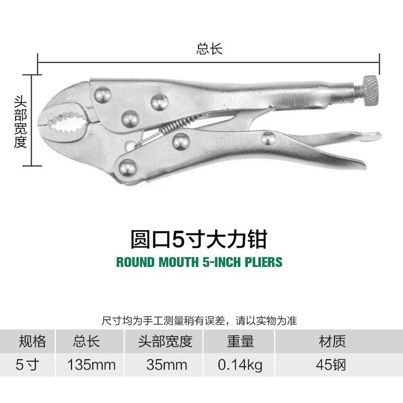 - Model: 504122; round mouth 5-inch powerful pliers 0.14kg