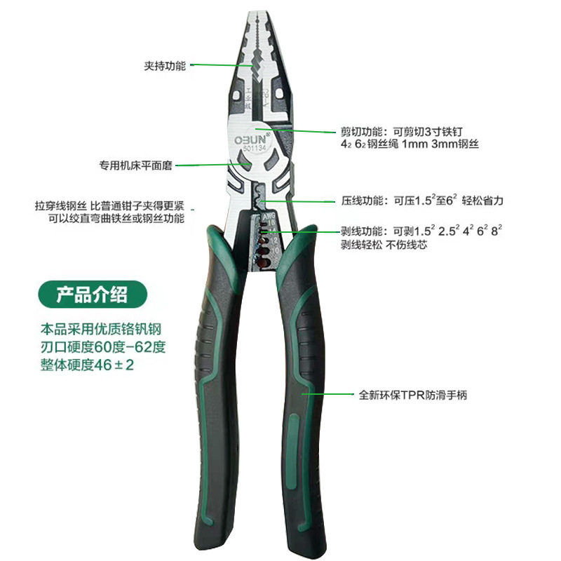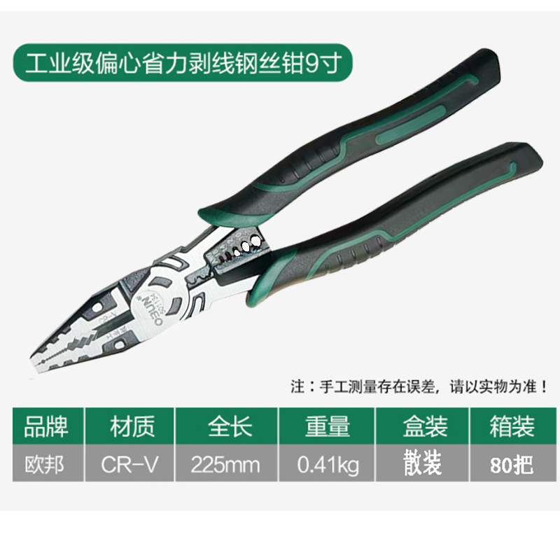 - Model: 501134; New 9-inch small green handle wire stripping pliers, bulk 0.38kg