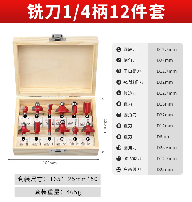 - 型號:【1/4柄部】銑刀12件套